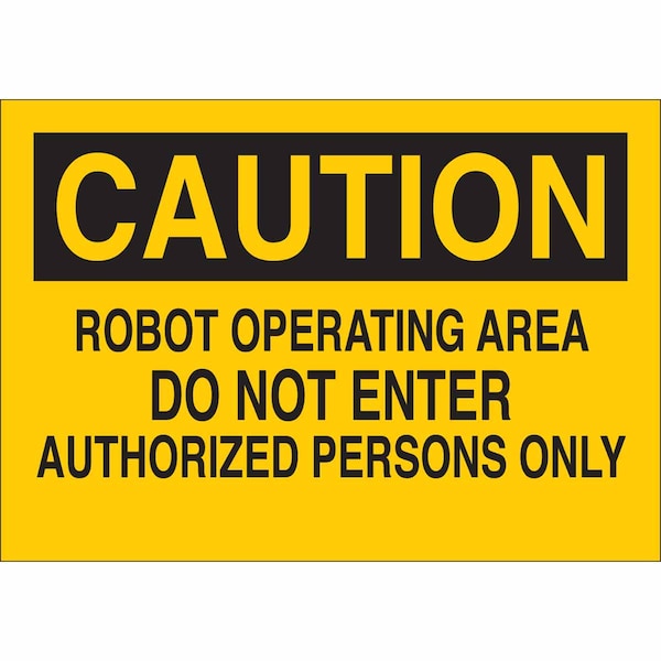 Caution Sign, Sign Subject Matter Authorized Personnel and Restricted Access, Height 7 in, Width 10 in, Sign Material Aluminum, Header Caution, Legend Robot Operating Area Do Not Enter Authorized Persons Only, Printed Language English, Sign Shape Rectangle
