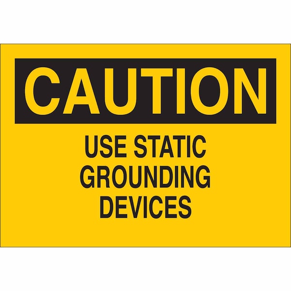 Caution Sign, Sign Subject Matter Electrical Hazard, Height 7 in, Width 10 in, Sign Material Aluminum, Header Caution, Legend Use Static Grounding Devices, Printed Language English, Sign Shape Rectangle