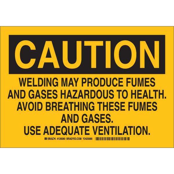 Caution Sign, Sign Subject Matter Welding Hazard, Height 7 in, Width 10 in, Sign Material Plastic, Header Caution, Legend Welding May Produce Fumes And Gases Hazardous To Health. Avoid Breathing These Fumes And Gases. Use Adequate Ventilation., Printed Language English, Sign Shape Rectangle