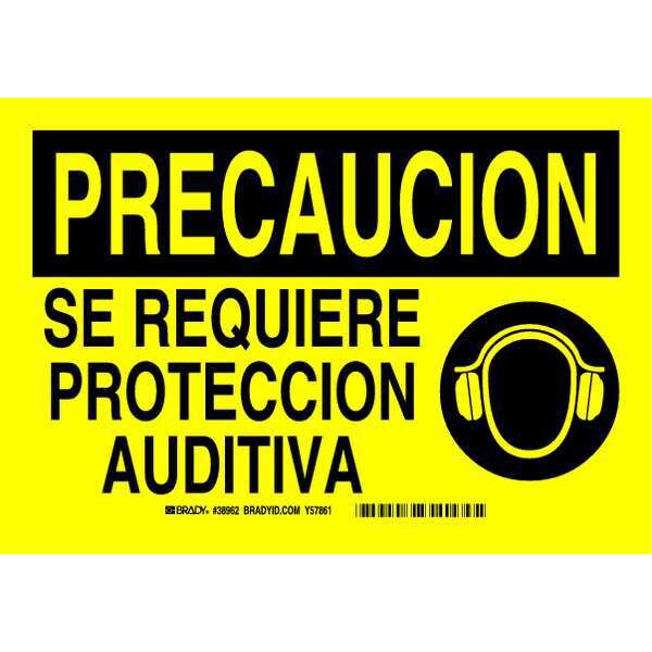 Caution Sign, Sign Subject Matter Personal Protection, Height 7 in, Width 10 in, Sign Material Plastic, Header Precaucion, Legend Se Requiere Proteccion Auditiva, Printed Language Spanish, Sign Shape Rectangle