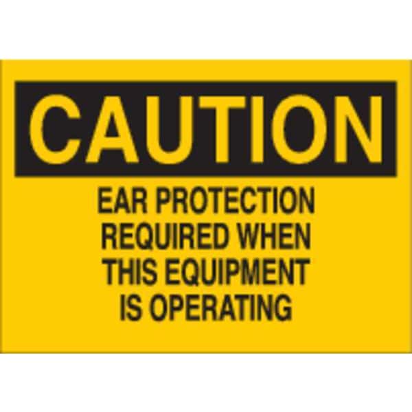 Caution Sign, Sign Subject Matter Personal Protection, Height 7 in, Width 10 in, Sign Material Polyester, Header Caution, Legend Ear Protection Required When This Equipment Is Operating, Printed Language English, Sign Shape Rectangle