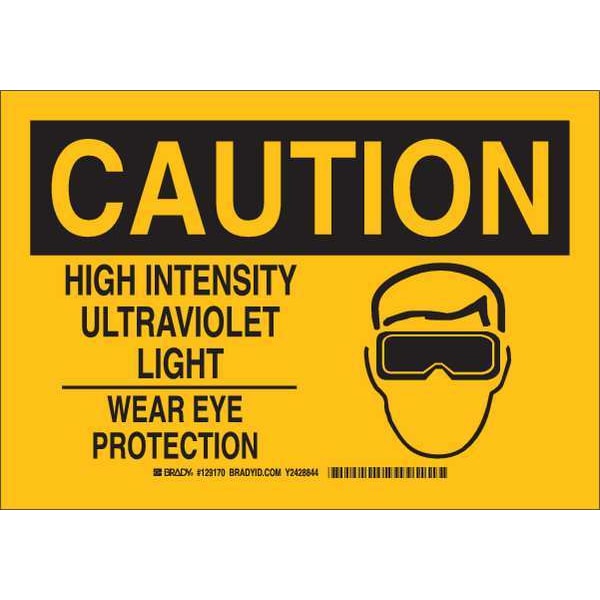 Caution Sign, Rectangle, English, Sign Legend High Intensity Ultraviolet Light Wear Eye Protection