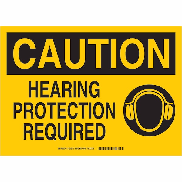 Caution Sign, Sign Subject Matter Personal Protection, Height 7 in, Width 10 in, Sign Material Fiberglass, Header Caution, Legend Hearing Protection Required, Printed Language English, Sign Shape Rectangle