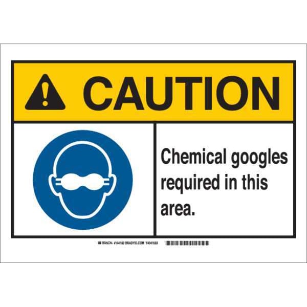 Caution Sign, Sign Subject Matter Personal Protection, Height 7 in, Width 10 in, Sign Material Plastic, Sign Mounting Style With Mounting Holes, Header Caution, Legend Chemical Goggles Required In This Area, Printed Language English, Sign Shape Rectangle
