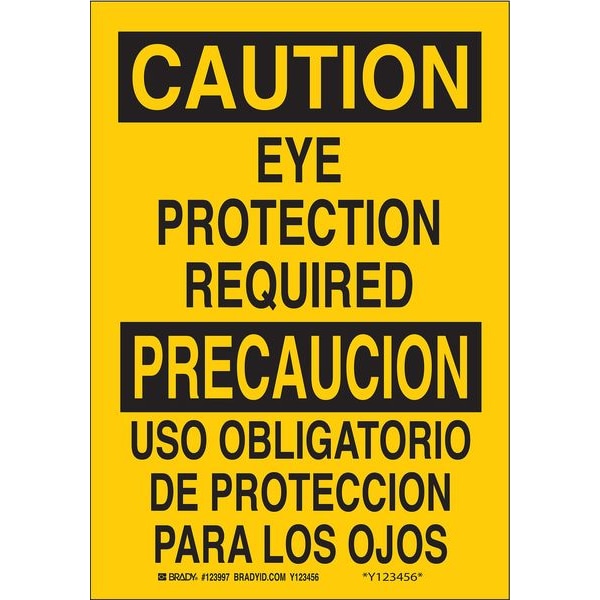 Caution Sign, Sign Subject Matter Personal Protection, Height 14 in, Width 10 in, Sign Material Plastic, Header Caution/Precaucion, Legend Eye Protection Required/Uso Obligatorio De Proteccion Para Los Ojos, Printed Language English, Spanish, Sign Shape Rectangle
