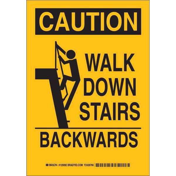 Caution, Walk Down Stairs Backwards, 10" W x 14" H, Rectangle, Plastic, 129094