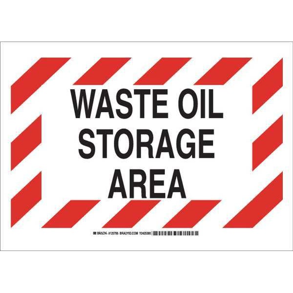 Chemical Sign, Sign Subject Matter Facility, Height 10 In., Width 14 In., Sign Material Polyester, Sign Mounting Style Adhesive Surface, Header No Header, Legend Waste Oil Storage Area, Printed Language English, Sign Shape Rectangle