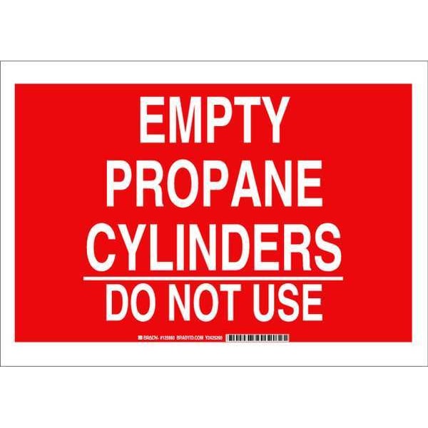 Chemical Sign, Sign Subject Matter Chemical, Gas or Hazardous Materials, Height 10 in, Width 14 in, Sign Material Polyester, Sign Mounting Style Adhesive Surface, Header No Header, Legend Empty Propane Cylinders Do Not Use, Printed Language English, Sign Shape Rectangle
