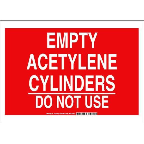 Chemical Sign, Sign Subject Matter Chemical, Gas or Hazardous Materials, Height 10 in, Width 14 in, Sign Material Polyester, Sign Mounting Style Adhesive Surface, Header No Header, Legend Empty Acetylene Cylinders Do Not Use, Printed Language English, Sign Shape Rectangle