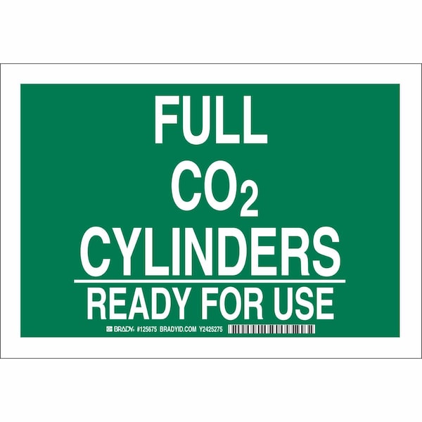 Chemical Sign, Sign Subject Matter Chemical, Gas or Hazardous Materials, Height 10 in, Width 14 in, Sign Material Polyester, Sign Mounting Style Adhesive Surface, Header No Header, Legend Full Co2 Cylinders Ready For Use, Printed Language English, Sign Shape Rectangle