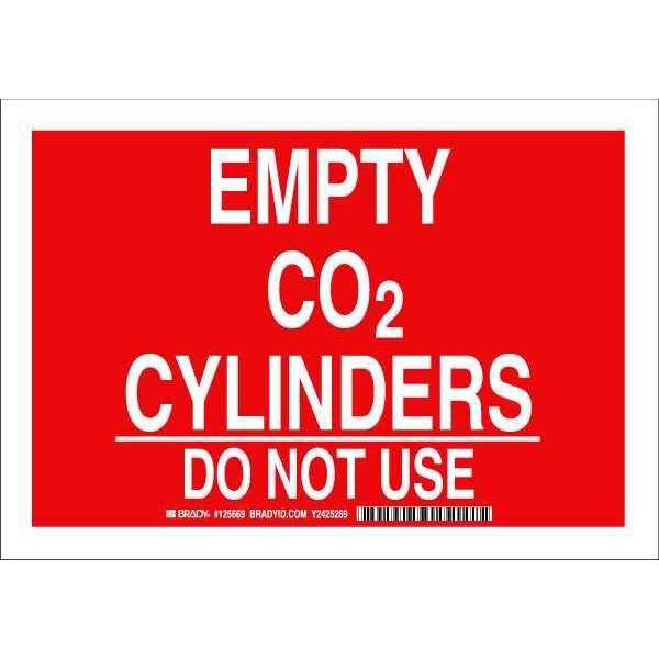 Chemical Sign, Sign Subject Matter Chemical, Gas or Hazardous Materials, Height 7 in, Width 10 in, Sign Material Polyester, Sign Mounting Style Adhesive Surface, Header No Header, Legend Empty CO2 Cylinders Do Not Use, Printed Language English, Sign Shape Rectangle
