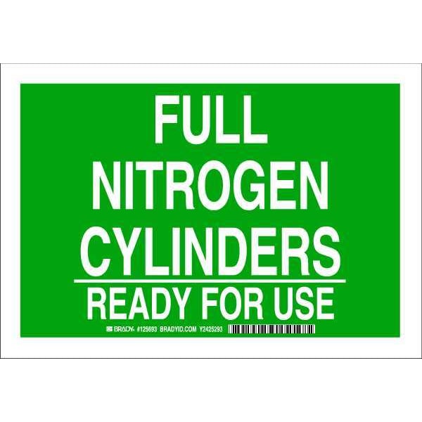 Chemical Sign, Sign Subject Matter Chemical, Gas or Hazardous Materials, Height 7 in, Width 10 in, Sign Material Polyester, Sign Mounting Style Adhesive Surface, Header No Header, Legend Full Nitrogen Cylinders Ready For Use, Printed Language English, Sign Shape Rectangle