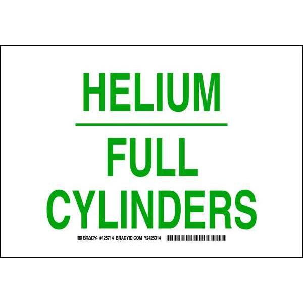 Chemical Sign, Sign Subject Matter Chemical, Gas or Hazardous Materials, Height 7 in, Width 10 in, Sign Material Polyester, Sign Mounting Style Adhesive Surface, Header No Header, Legend Helium Full Cylinders, Printed Language English, Sign Shape Rectangle