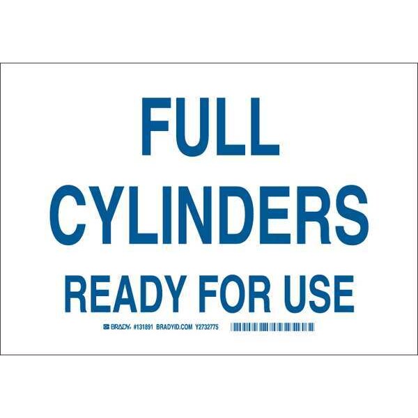 Chemical Sign, Sign Subject Matter Chemical, Gas or Hazardous Materials, Height 7 in, Width 10 in, Sign Material Polyester, Sign Mounting Style Adhesive Surface, Header No Header, Legend Full Cylinders Ready For Use, Printed Language English, Sign Shape Rectangle