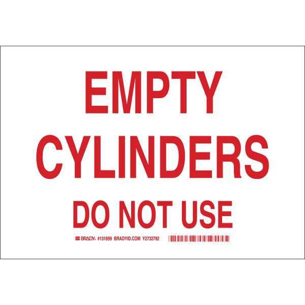 Chemical Sign, Sign Subject Matter Chemical, Gas or Hazardous Materials, Height 7 in, Width 10 in, Sign Material Polyester, Sign Mounting Style Adhesive Surface, Header No Header, Legend Empty Cylinders Do Not Use, Printed Language English, Sign Shape Rectangle
