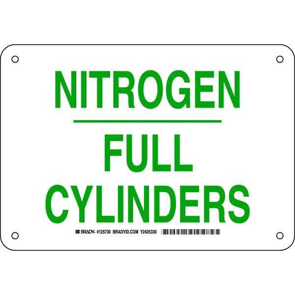 Chemical Sign, Sign Subject Matter Chemical, Gas or Hazardous Materials, Height 7 in, Width 10 in, Sign Material Aluminum, Sign Mounting Style With Mounting Holes, Header No Header, Legend Nitrogen Full Cylinders, Printed Language English, Sign Shape Rectangle