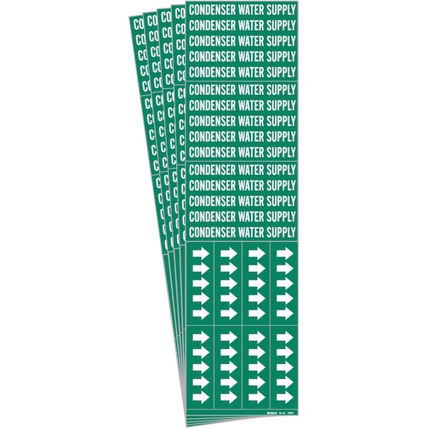 CONDENSER WATER SUPPLY Pipe Marker Sty 3C Arrows WT on GN 3 per Card, 5 PK
