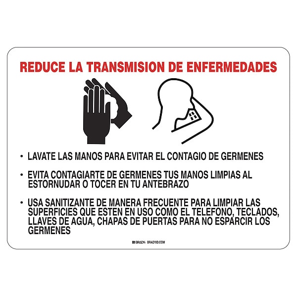 Covid 19 Sign 10X14 Spanish Reduce Disea, Sign Subject Matter Coronavirus Prevention, Height 10 in, Width 14 in, Sign Material Polystyrene, Header No Header