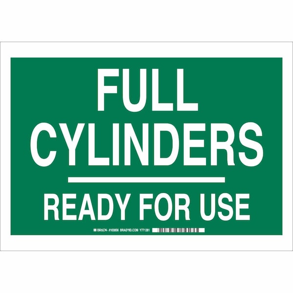 Cylinder Sign, Sign Subject Matter Chemical, Gas or Hazardous Materials, Height 10 in, Width 14 in, Sign Material Polyester, Sign Mounting Style Adhesive Surface, Header No Header, Legend Full Cylinders Ready For Use, Printed Language English, Sign Shape Rectangle
