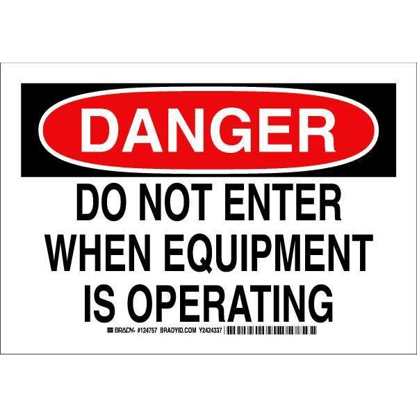 Danger Sign, Sign Subject Matter Machine and Operational, Height 7 In., Width 10 In., Sign Material Polyester, Sign Mounting Style Adhesive Surface, Header Danger, Legend Do Not Enter When Equipment Is Operating, Printed Language English, Sign Shape Rectangle