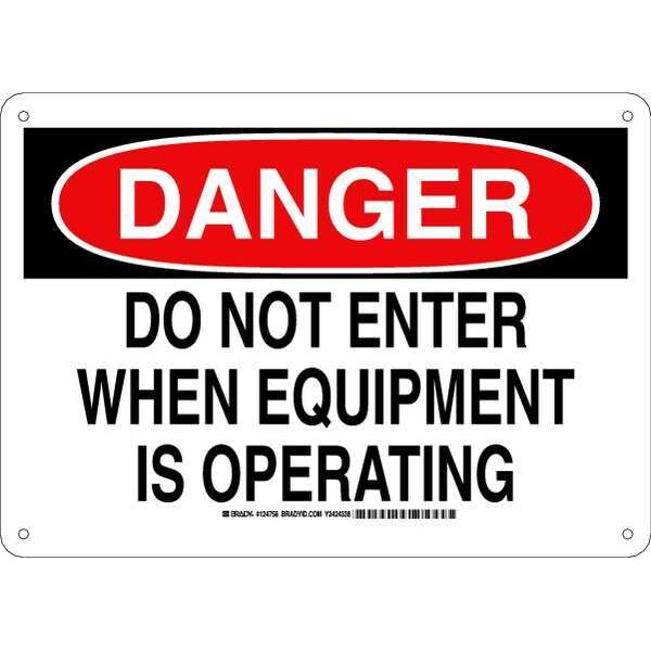 Danger Sign, Sign Subject Matter Machine and Operational, Height 10 In., Width 14 In., Sign Material Aluminum, Sign Mounting Style With Mounting Holes, Header Danger, Legend Do Not Enter When Equipment Is Operating, Printed Language English, Sign Shape Rectangle