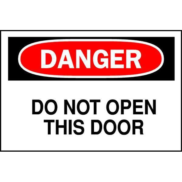 Safety Sign, Sign Subject Matter Door Instruction, Height 10 In., Width 14 In., Sign Material Aluminum, Sign Mounting Style With Mounting Holes, Header Danger, Legend Do Not Open This Door, Printed Language English, Sign Shape Rectangle