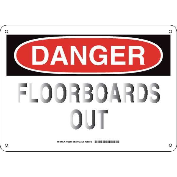 Danger Sign, Sign Subject Matter Facility, Height 10 In., Width 14 In., Sign Material Plastic, Sign Mounting Style With Mounting Holes, Header Danger, Legend Floorboards Out, Printed Language English, Sign Shape Rectangle