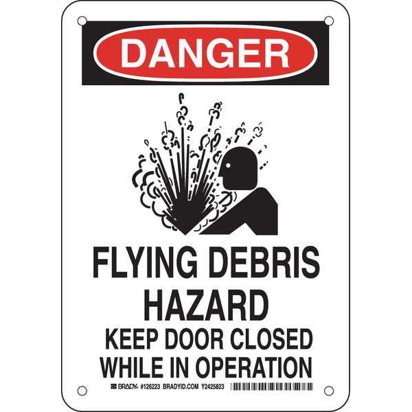 Danger, Flying Debris Hazard Keep Door Closed While In Operation, 7" W x 10" H, Plastic, 126223