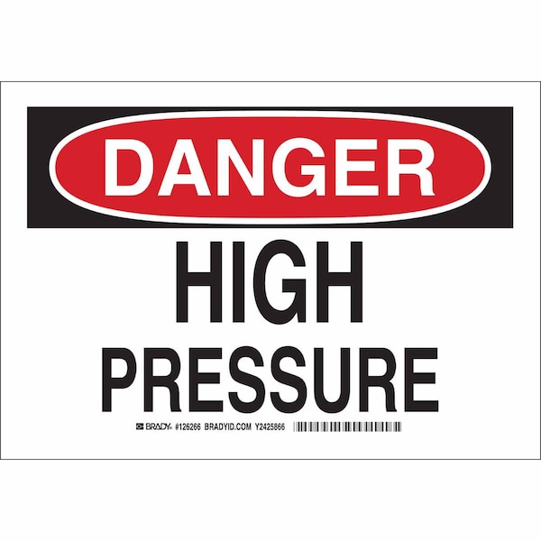 Danger Sign, Sign Subject Matter Facility, Height 7 In., Width 10 In., Sign Material Aluminum, Sign Mounting Style With Mounting Holes, Header Danger, Legend High Pressure, Printed Language English, Sign Shape Rectangle