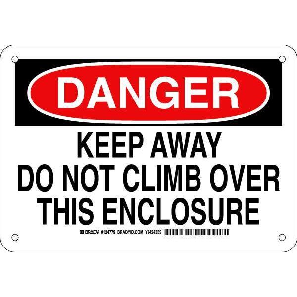 Danger Sign, Sign Subject Matter Keep Clear, Height 7 In., Width 10 In., Sign Material Aluminum, Sign Mounting Style With Mounting Holes, Header Danger, Legend Keep Away Do Not Climb Over This Enclosure, Printed Language English, Sign Shape Rectangle