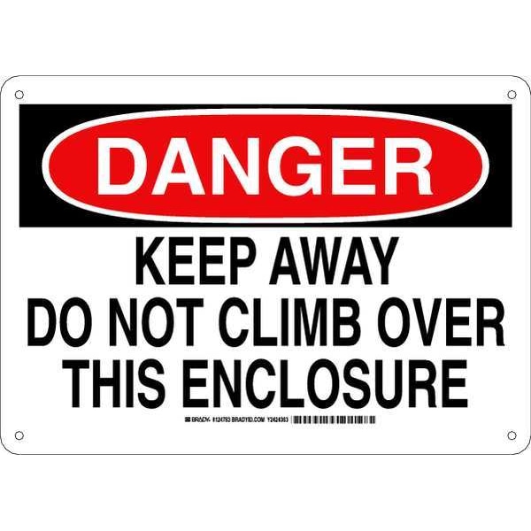 Danger Sign, Sign Subject Matter Keep Clear, Height 10 In., Width 14 In., Sign Material Plastic, Sign Mounting Style With Mounting Holes, Header Danger, Legend Keep Away Do Not Climb Over This Enclosure, Printed Language English, Sign Shape Rectangle