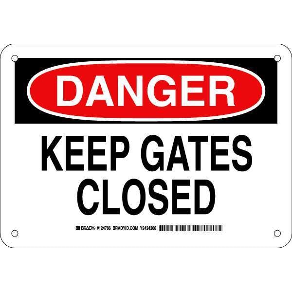 Danger Sign, Sign Subject Matter Door Instruction, Height 7 In., Width 10 In., Sign Material Plastic, Sign Mounting Style With Mounting Holes, Header Danger, Legend Keep Gates Closed, Printed Language English, Sign Shape Rectangle