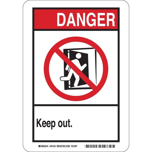 Safety Sign, Sign Subject Matter Keep Clear, Height 10 In., Width 7 In., Sign Material Polyester, Sign Mounting Style Adhesive Surface, Header Danger, Legend Keep Out., Printed Language English, Sign Shape Rectangle