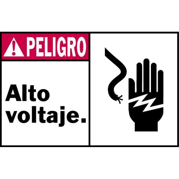 Danger Label, Horizontal Rectangle, Number of Printed Sides 1, Spanish, Sign Legend Alto Voltaje., Sign Legend Style Text, Package Quantity 5