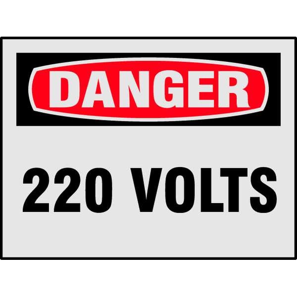 Danger Label, Horizontal Rectangle, Number of Printed Sides 1, English, Sign Format Traditional OSHA, Sign Legend 220 Volts, Sign Legend Style Text, Package Quantity 8