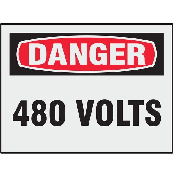 Danger Label, Horizontal Rectangle, Number of Printed Sides 1, English, Sign Format Traditional OSHA, Sign Legend 480 Volts, Sign Legend Style Text, Package Quantity 8