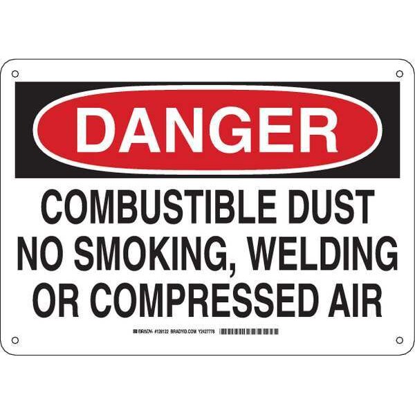 Danger No Smoking Sign, Sign Subject Matter No Smoking, Height 10 in, Width 14 in, Sign Material Plastic, Sign Mounting Style With Mounting Holes, Header Danger, Legend Combustible Dust No Smoking, Welding Or Compressed Air, Printed Language English, Sign Shape Rectangle