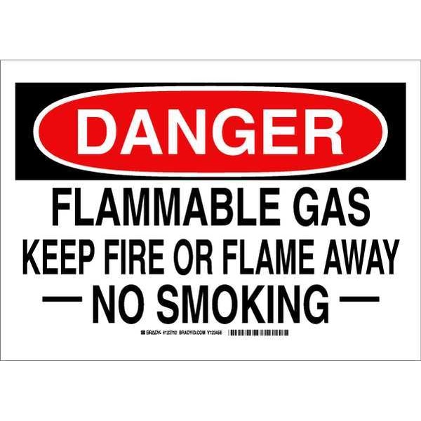 Danger No Smoking Sign, Sign Subject Matter No Smoking, Height 10 in, Width 14 in, Sign Material Polyester, Sign Mounting Style Adhesive Surface, Header Danger, Legend Flammable Gas Keep Fire Or Flame Away No Smoking, Printed Language English, Sign Shape Rectangle