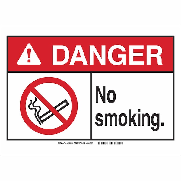 Danger No Smoking Sign, Sign Subject Matter No Smoking, Height 10 in, Width 14 in, Sign Material Polyester, Sign Mounting Style Adhesive Surface, Header Danger, Legend No Smoking., Printed Language English, Sign Shape Rectangle