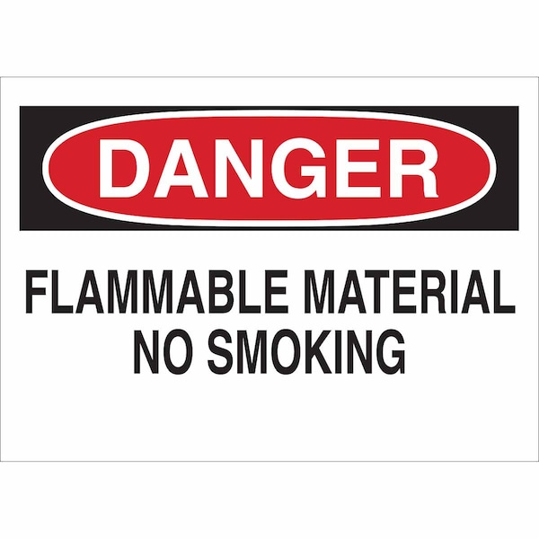 Danger No Smoking Sign, Sign Subject Matter No Smoking, Height 10 in, Width 14 in, Sign Material Aluminum, Sign Mounting Style With Mounting Holes, Header Danger, Legend Flammable Material No Smoking, Printed Language English, Sign Shape Rectangle