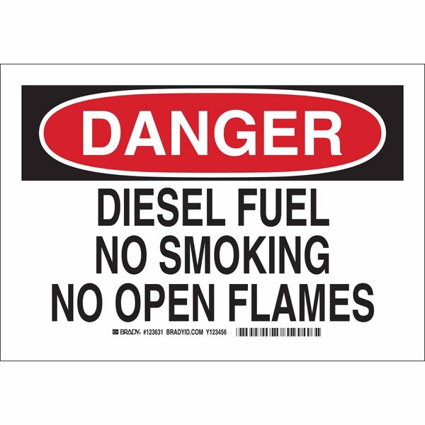 Danger No Smoking Sign, Sign Subject Matter No Smoking, Height 7 in, Width 10 in, Sign Material Plastic, Sign Mounting Style With Mounting Holes, Header Danger, Legend Diesel Fuel No Smoking No Open Flames, Printed Language English, Sign Shape Rectangle
