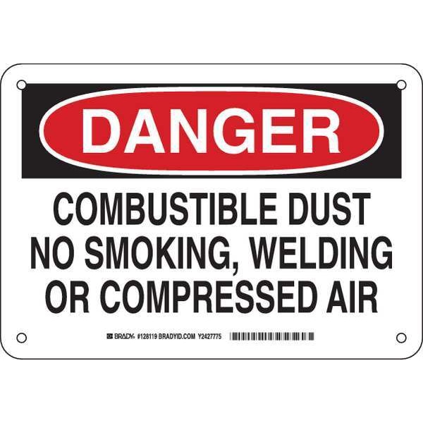 Danger No Smoking Sign, Sign Subject Matter No Smoking, Height 7 in, Width 10 in, Sign Material Plastic, Sign Mounting Style With Mounting Holes, Header Danger, Legend Combustible Dust No Smoking, Welding Or Compressed Air, Printed Language English, Sign Shape Rectangle