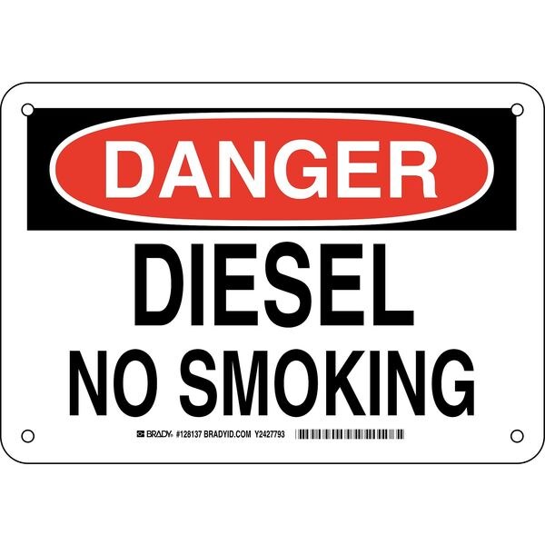 Danger No Smoking Sign, Sign Subject Matter No Smoking, Height 7 in, Width 10 in, Sign Material Plastic, Sign Mounting Style With Mounting Holes, Header Danger, Legend Diesel No Smoking, Printed Language English, Sign Shape Rectangle