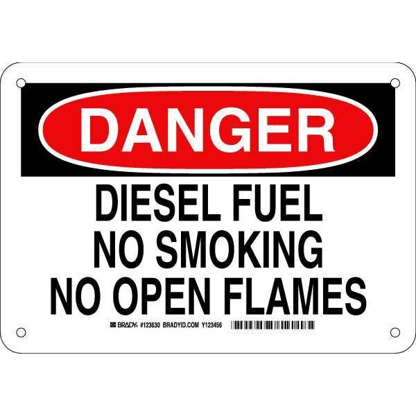 Danger No Smoking Sign, Sign Subject Matter No Smoking, Height 7 in, Width 10 in, Sign Material Aluminum, Sign Mounting Style With Mounting Holes, Header Danger, Legend Diesel Fuel No Smoking No Open Flames, Printed Language English, Sign Shape Rectangle