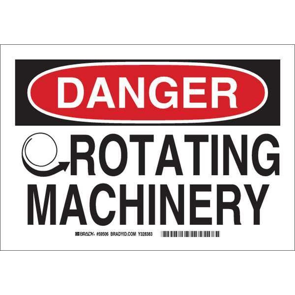 Danger Sign, Sign Subject Matter Machine and Operational, Height 7 In., Width 10 In., Sign Material Fiberglass, Sign Mounting Style With Mounting Holes, Header Danger, Legend Rotating Machinery, Printed Language English, Sign Shape Rectangle