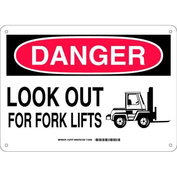 Danger Sign, Sign Subject Matter Lift Truck Traffic, Height 10 In., Width 14 In., Sign Material Plastic, Sign Mounting Style With Mounting Holes, Header Danger, Legend Look Out For Fork Lifts, Printed Language English, Sign Shape Rectangle