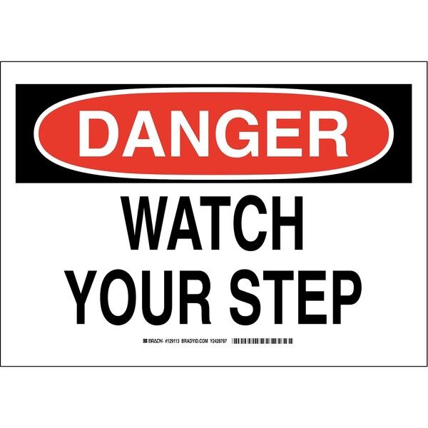 Danger Sign, Sign Subject Matter Accident Prevention, Height 10 In., Width 14 In., Sign Material Polyester, Sign Mounting Style Adhesive Surface, Header Danger, Legend Watch Your Step, Printed Language English, Sign Shape Rectangle
