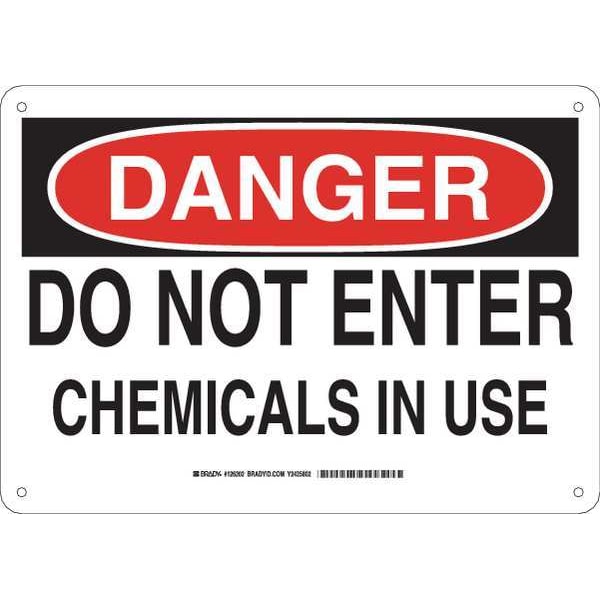 Danger Sign, Sign Subject Matter Chemical, Gas or Hazardous Materials, Height 10 in, Width 14 in, Sign Material Plastic, Sign Mounting Style With Mounting Holes, Header Danger, Legend Do Not Enter Chemicals In Use, Printed Language English, Sign Shape Rectangle