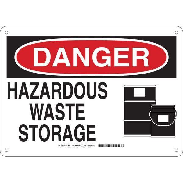 Danger Sign, Sign Subject Matter Chemical, Gas or Hazardous Materials, Height 10 in, Width 14 in, Sign Material Plastic, Sign Mounting Style With Mounting Holes, Header Danger, Legend Hazardous Waste Storage, Printed Language English, Sign Shape Rectangle