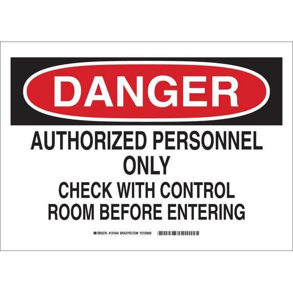 Danger Sign, Sign Subject Matter Authorized Personnel and Restricted Access, Height 10 in, Width 14 in, Sign Material Polyester, Sign Mounting Style Adhesive Surface, Header Danger, Legend Authorized Personnel Only Check With Control Room Before Entering, Printed Language English, Sign Shape Rectangle
